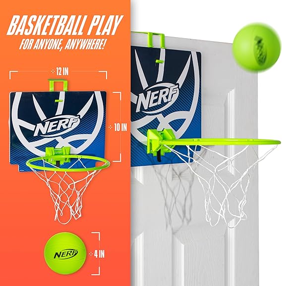 - CLASSIC MINI HOOP: The NERF mini over the door basketball hoop set is the perfect way to bring the fun of basketball indoors which is why it’s been a kid-favorite for over 50 years!